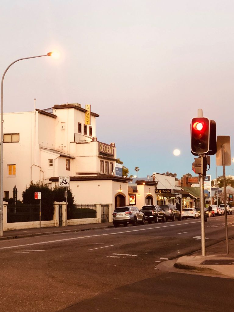 FRONT OF THE POSTCARD TO MEG: I write this letter to you sitting on a bench in the park on an early winter evening. The view from me to you – full moon white yet blue, traffic lights red, the sky is somewhere in between…